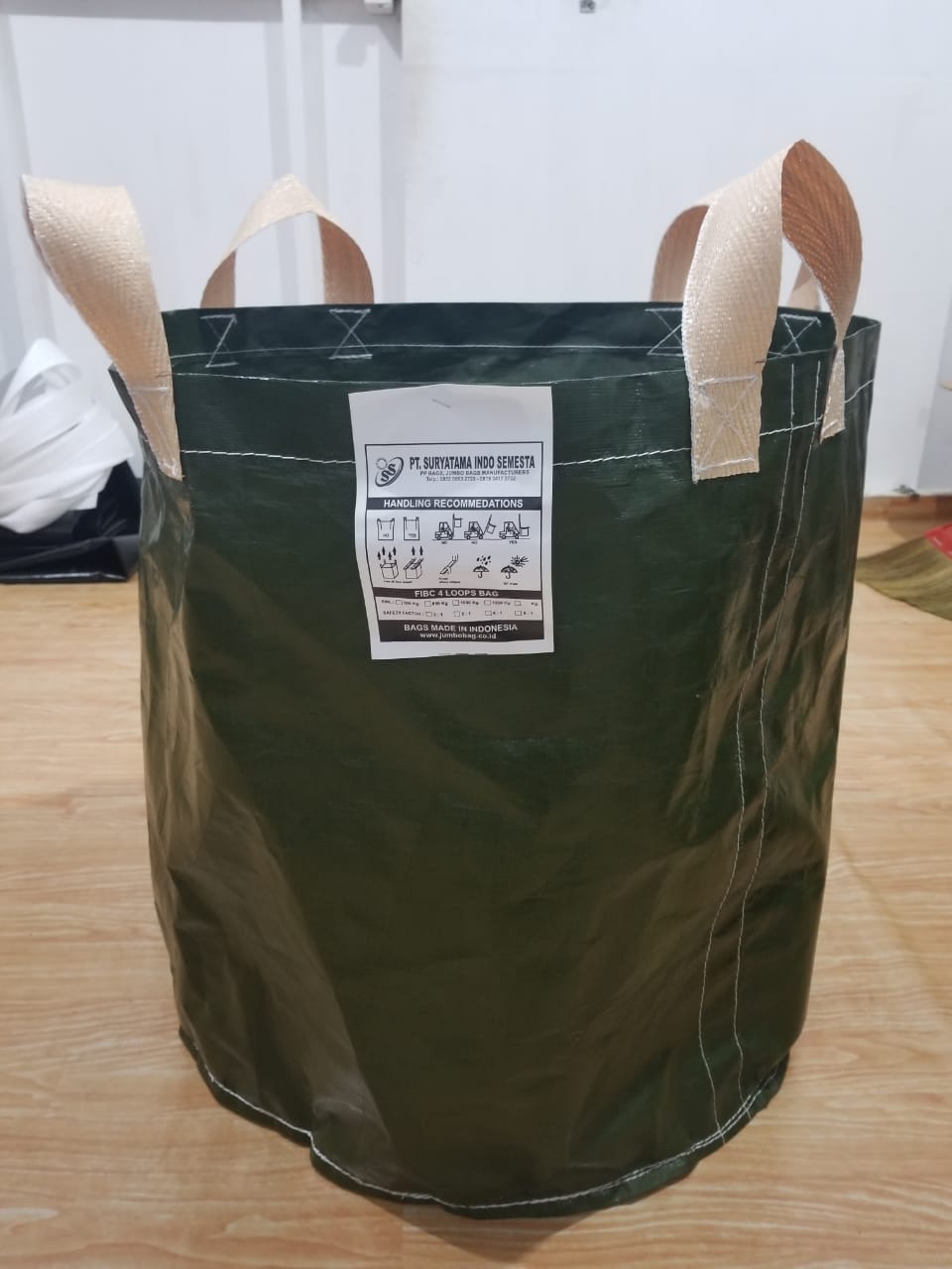 Jumbobag.co.id – Jual Planter Bag 150 Liter Hitam Grosir & Ecer, Jumbobag.co.id – Jual Jumbo Bag Bekas dan Baru Termurah Se Indonesia Kualitas Terbaik. Kami menJual Jumbo Bag di Jakarta, Bogor, Depok Tangerang, Bekasi dan Seluruh Indonesia, kami silap untuk mengirim jumbobag ke seluruh indonesia, FIBC adalah wadah tas dalam dimensi besar untuk menyimpan dan mengangkut berbagai produk yang berbentuk butiran, serbuk, atau serpih misalnya semen, pasir, pupuk, resin plastik dan sebagainya. Ini terbuat dari anyaman polypropylene dan biasanya memiliki ukuran yang sesuai tergantung dari jenis produk yang akan diisikan. Kapasitasnya biasanya 500 kg – 2.000 kg dan bisa lebih. Pengangkutan dan pemuatan dilakukan pada palet atau dengan mengangkatnya dalam bentuk loop.